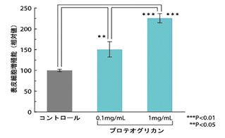 EGF様作用をもつ物質は、今までさまざまなものが研究されてきていますが、おそらくプロテオグリカンが、最も強いEGF様作用を有しているようです。