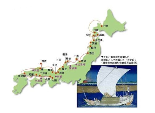室町時代、造船技術が発達し、江戸時代前期にはアイヌの人々が採集した昆布を、日本海沿岸を西廻りに、山形県の酒田から佐渡小木・能登福浦・下関などを経て大阪に運ぶことが可能となりました。その海の道を意味します。各々の寄港地で、昆布食文化が開いていき、和食の基礎となる、いわゆる「うまみ」が醸成されたのです。今でこそ、昆布は安い食料ですが、西廻(にしまわり)海運(かいうん)が十分整っていなかった時代では、地方によっては、税金の代わりになるほど貴重なものだったのです。