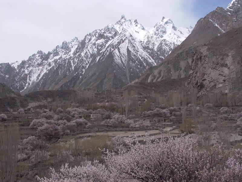 また、がんのない村で有名だった、パキスタンのインダス川上流、カラコルム山脈の麓に位置するフンザにもがん、糖尿病が発生し始めています(2005年4月下旬、アプリコットの満開の季節、私はこの村に数日滞在し現地調査を行いました)。写真の桜のように写っているのは、アプリコットです
